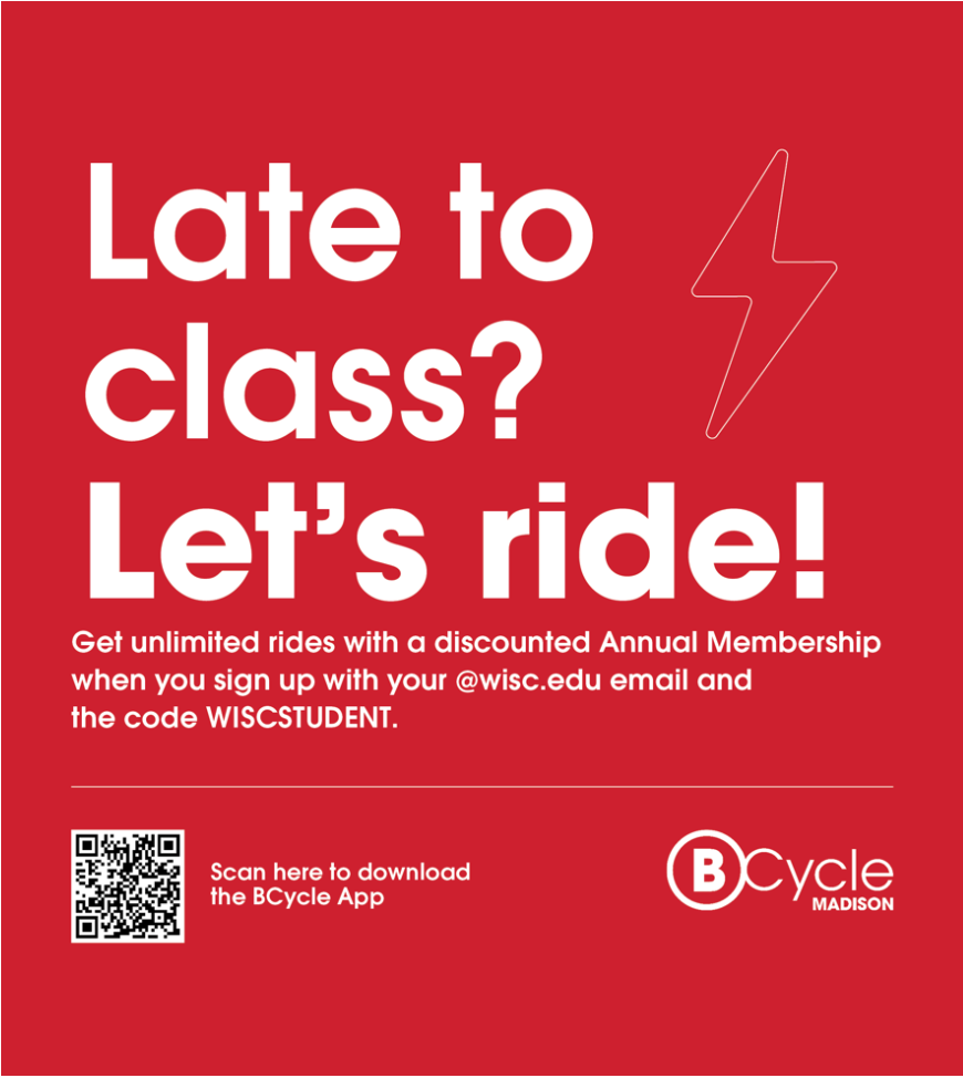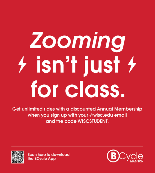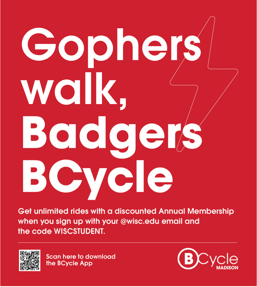 Bucky likes to BCycle, so we came up with creative strategies to incorporate the bikeshare around Madison through engaging signage, social media posts, and emails for UW students.